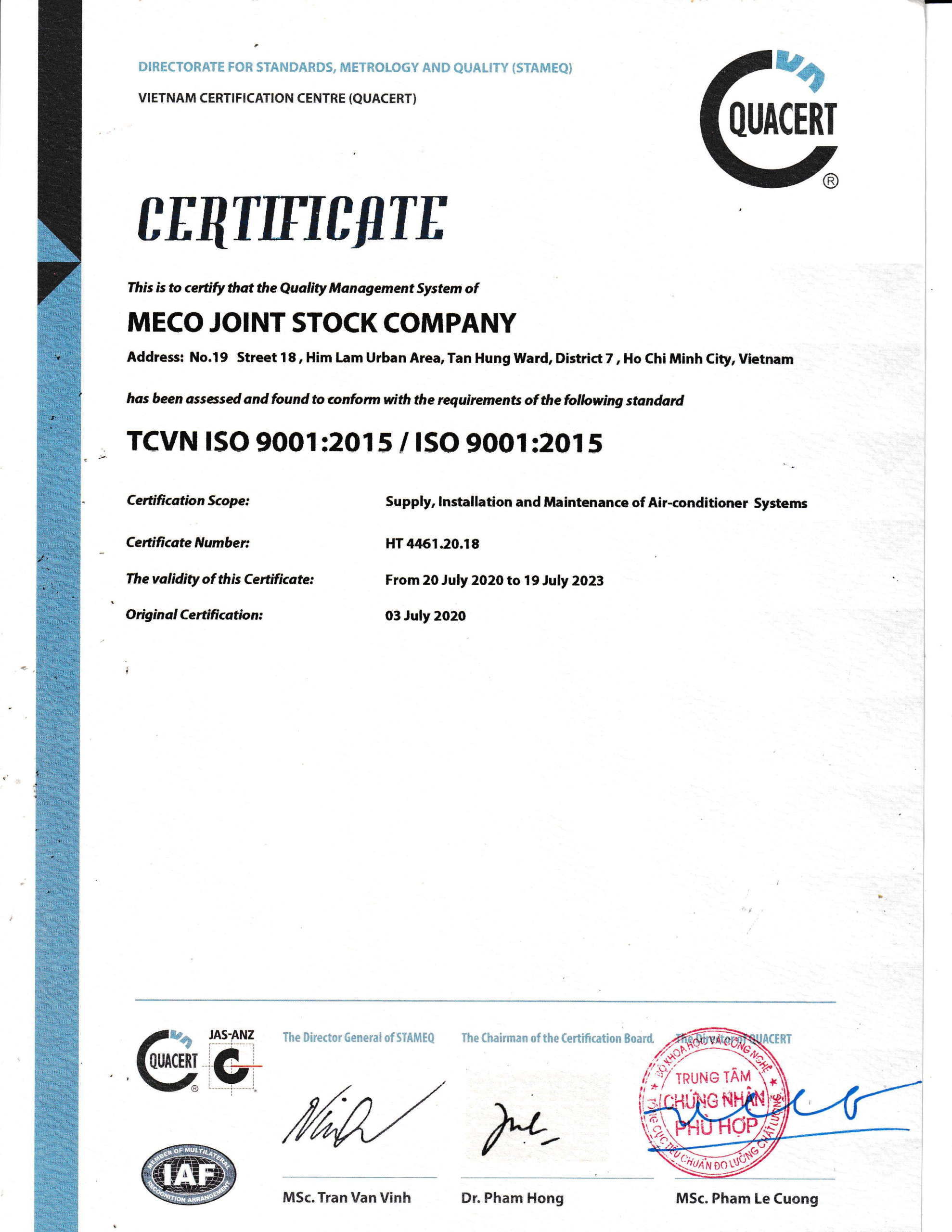 Là đơn vị hàng đầu trong lĩnh vực Cơ điện lạnh (M&E) và Điều hòa không khí (HVAC), MECO Việt Nam cung cấp giải pháp trọn gói từ tư vấn – thiết kế – thi công – bảo trì theo tiêu chuẩn ISO 9001:2015.